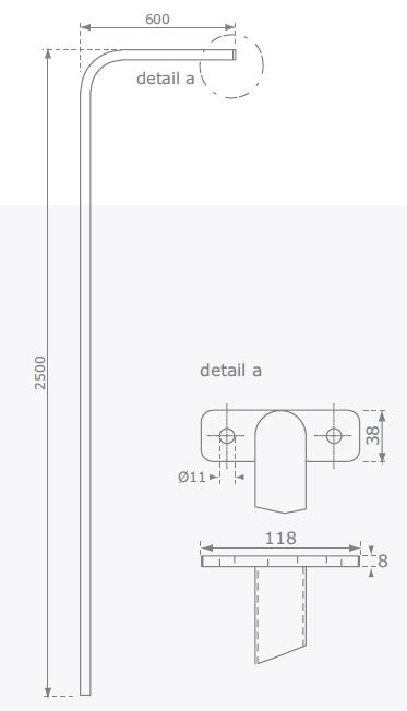 • holes diam. 11 mm in the assembly flat bar