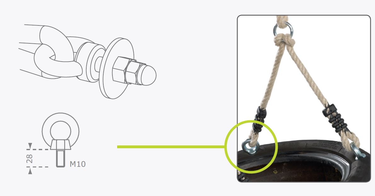 We reommend our construcion elements in which you can find slings necessary for safe assembly of the swing.